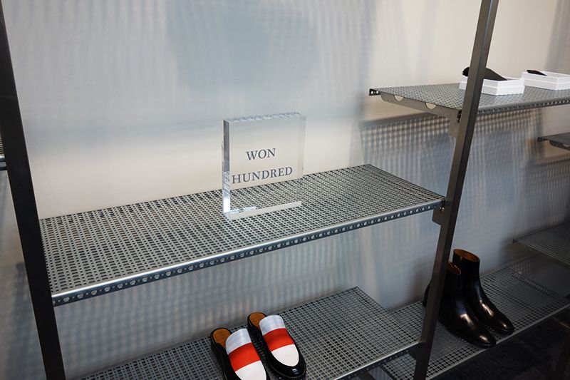 De winkel neemt zo'n honderd vierkante meter in beslag en is gevestigd op de begane grond van een negentiende-eeuws pand. Voor het interieur heeft Won Hundred-directeur Nikolaj Nielsen samengewerkt met zijn landgenoot Tania Mikkelstrup. Hun samenwerking heeft geleid tot een ontwerp met sterke contrasten en een industriële uitstraling.