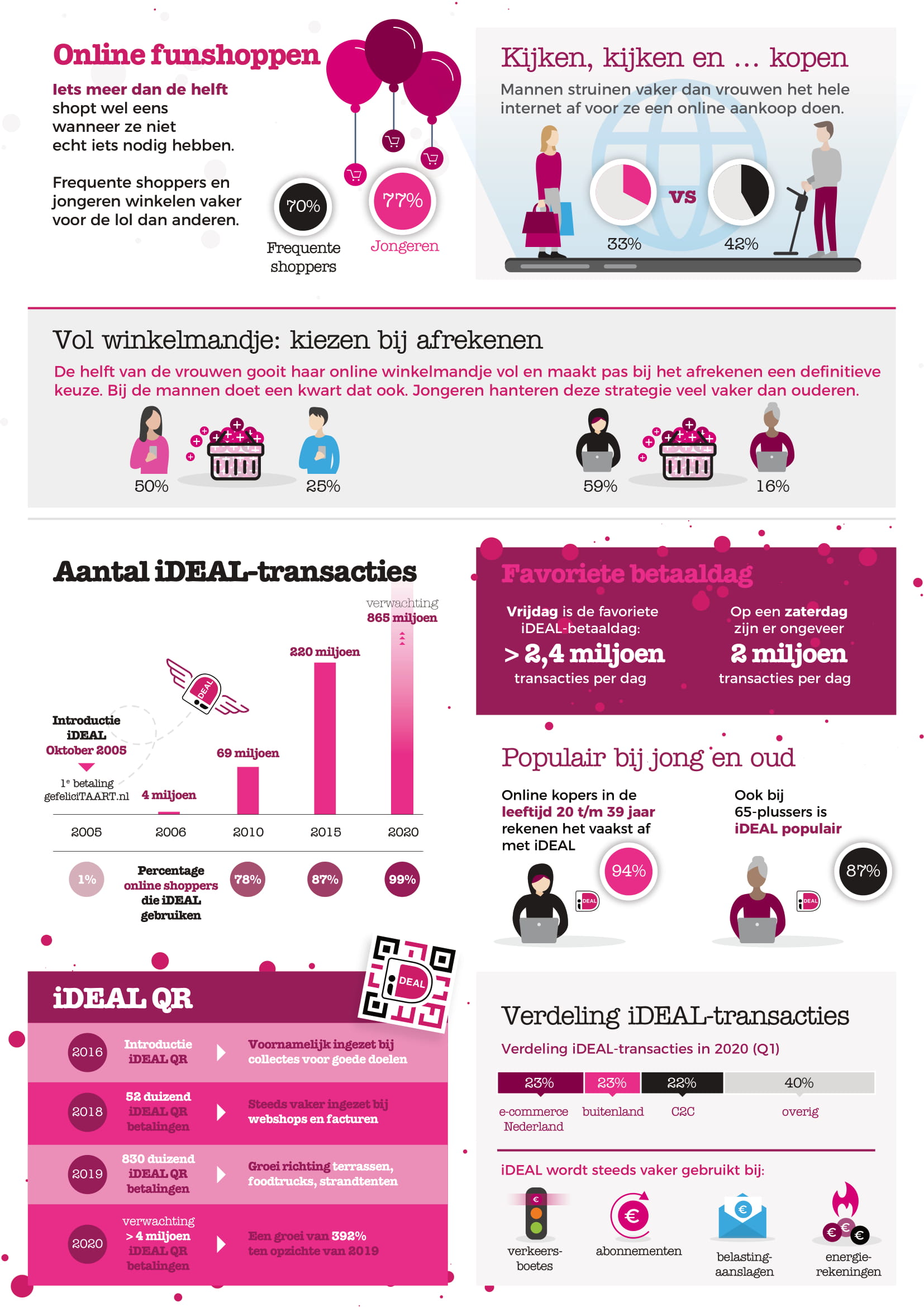 De online betaaldienst iDEAL bestaat vijftien jaar. In die jaren is de service aardig wat te weten gekomen over het shopgedrag van Nederlanders. Zo doet zestig procent van de jongeren zijn aankopen vanuit bed en wordt er gemiddeld gezien het meest vanaf de bank gewinkeld. Bekijk de infographic van iDEAL om meer te leren over het Nederlandse winkelgedrag.